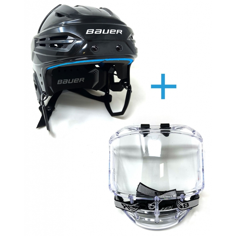 Aquest conjunt combina la casca Bauer Prodigy, dissenyada per oferir màxima seguretat i comoditat, amb una visera professional de policarbonat d’alt impacte que proporciona protecció facial completa sense comprometre la visibilitat.