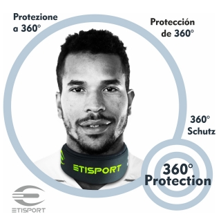 Protector de cuello de Etisport, un exclusivo productos que aporta confort y protección sin limitar movimientos. Un artículo que presenta en 6 diferentes tallas: XXS, XS, S, M, L, XL y está diseñados para deportistas que exigen protección sin sacrificar comodidad y agilidad. Desarrollado con una base acolchada de alta resistencia a impactos ubicadas en zonas claves del cuello absorbiendo golpes y brindando seguridad en cada acción.