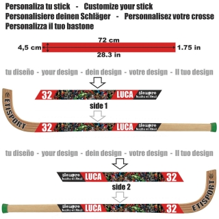 VOTRE IMAGE SUR VOTRE STICK: Envoyez les images de chacune des faces du Stick au format .jpg ou .png au format de 72 centimètres de long sur 4,5 centimètres de haut chacune. Nous les imprimerons sur votre bâton !